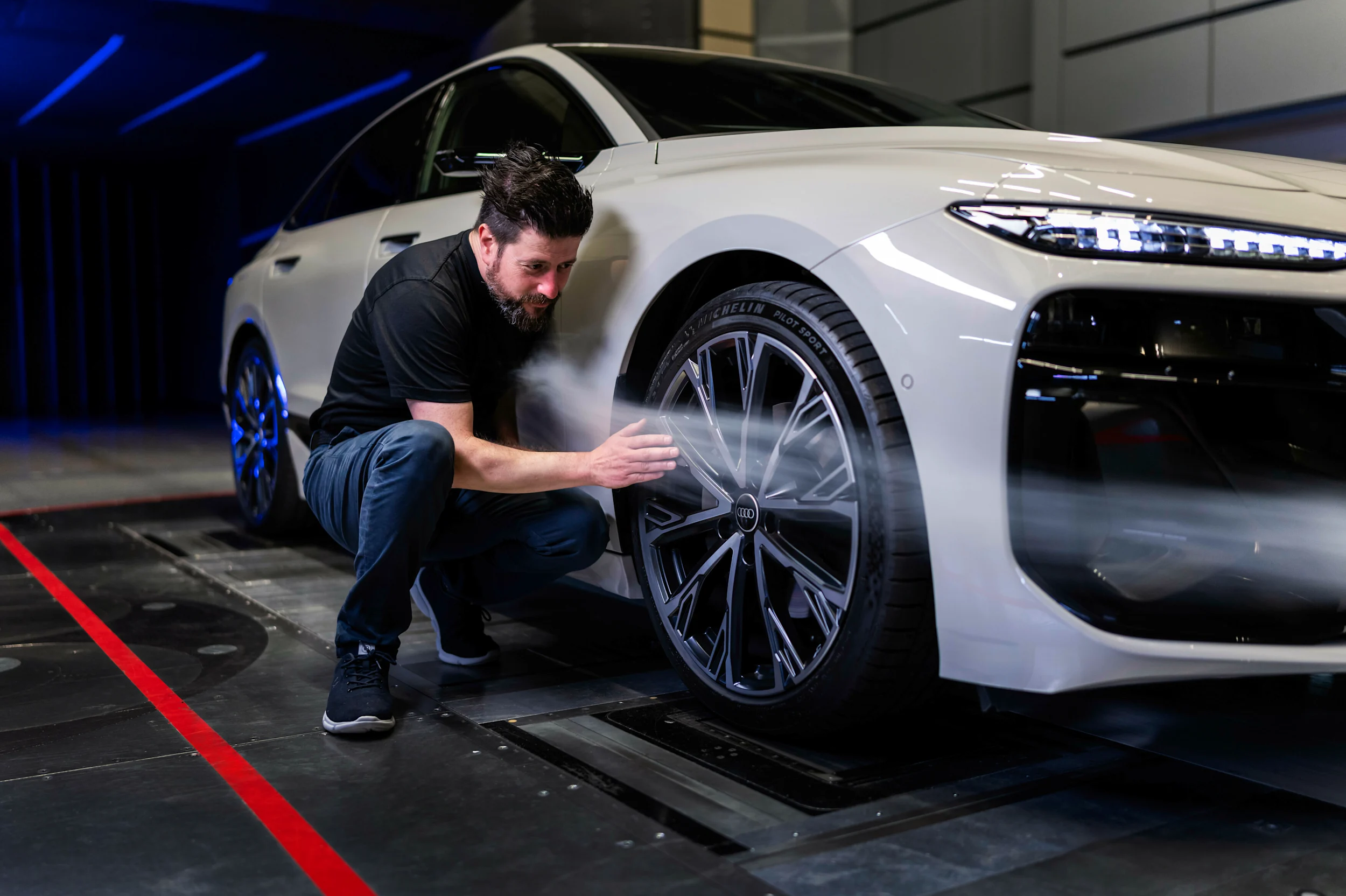 Ghelfi lisää: "Pohja on suurelta osin valmis, ja olemme hienosäätäneet monia sen osia, mukaan lukien erityisesti sovitetut pyöräspoilerit ja 3D-puskurit auton etuosassa, joista jokainen on optimoitu yksilöllisesti Sportback- ja Avant-malleille CFD-analyysiä käyttämällä – tuulitunnelimittausten mukaan tämä parantaa Cd:tä 0,002 ja 0,009. Auton etuosan suuri lattiasuoja (moottorin alussuoja) optimoitiin lisäämällä ilmanpoistoaukkoon suuri säde; keinupaneeli ja taka-akseli on suurelta osin peitetty. Nämä ovat vain muutamia esimerkkejä. Tarkastelimme käytännössä jokaista yksittäistä sädettä. Pystyimme saavuttamaan kaikki nämä optimoinnit erinomaisen tiimityön ansiosta projektijohtajien, järjestelmätiimien johtajien, komponenttipäälliköiden ja suunnittelijoiden kanssa."