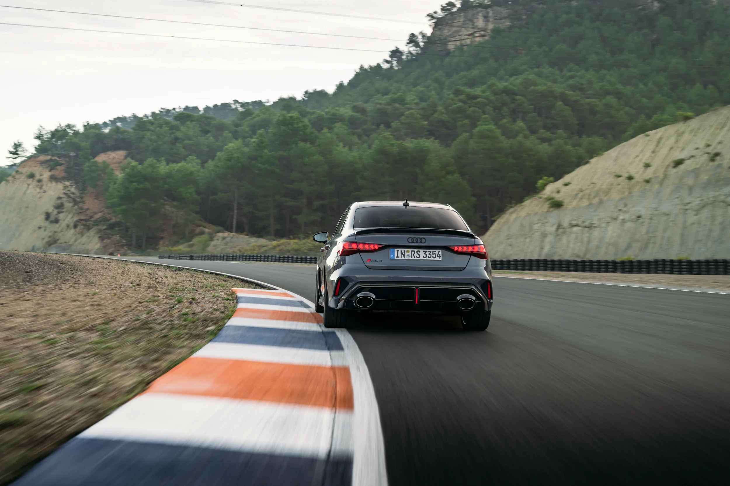 RS 3 suoriutuu nyt entistä paremmin kaarteissa, välttää aliohjautumisen kaarteen sisäänmenossa ja kääntyy nopeammin hienosäädön ansiosta - mukaan lukien jarruvääntömomentin vektorointi. Hienosäädettyjen jarrujen ansiosta sisäpyörillä kompakti urheiluauto seuraa kaarteen muotoja tarkemmin kuin aiemmin, sekä osakuormituksessa että ylikuormituksessa, ja se voidaan asettaa aikaisemmin ja paremmin kaarteeseen tarkasti. Toisin sanoen kuljettaja voi kiihdyttää RS 3:sta aikaisemmin ja ohjata sen kaarteen läpi suuremmilla nopeuksilla. Lisääntynyt sivuttaisdynamiikka on erityisen vaikuttava kilparadalla - täydellä intensiteetillä, kun ESC on deaktivoitu.
