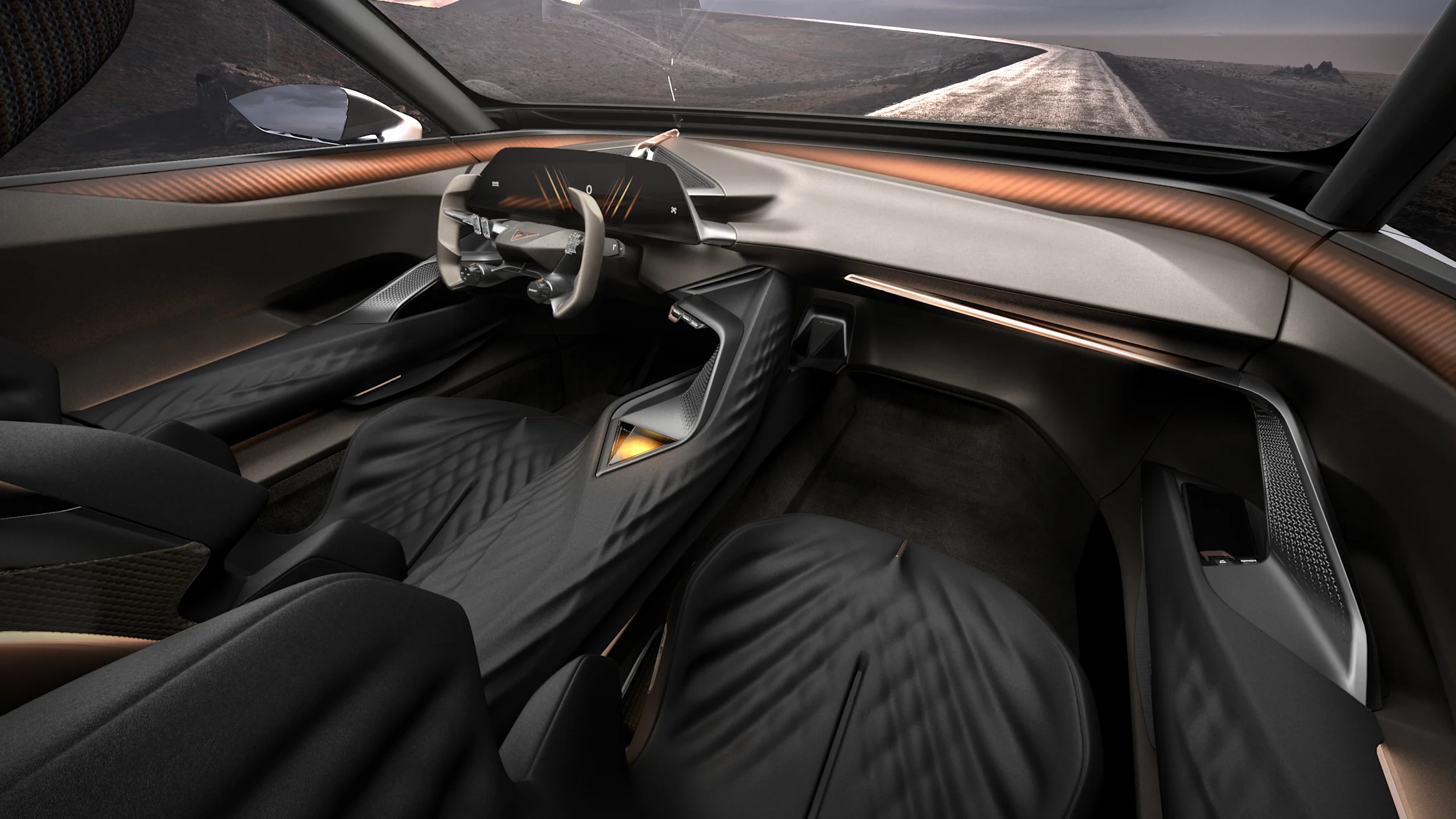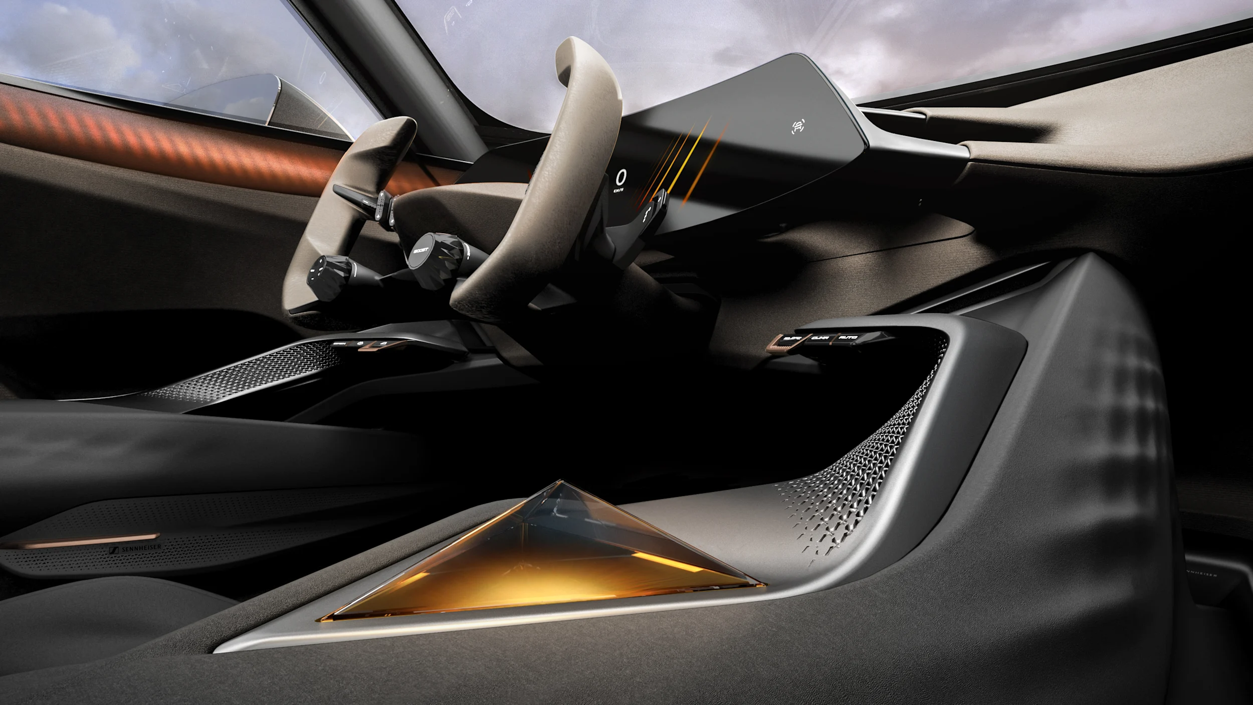 Muotoilun ytimessä on ”Driver Axis” – kerroksellisista rakenteista muotoiltu kojelauta, joka kehystää 24-tuumaista näyttöä. Kilpa- ja pelimaailmasta inspiroitunut ohjauspyörä sisältää satelliittisäätimet, jotka mahdollistavat täyden hallinnan ilman häiriötekijöitä. Korotettu keskikonsoli toimii integroidun ja toiminnallisen mono-ohjaamon selkärankana.