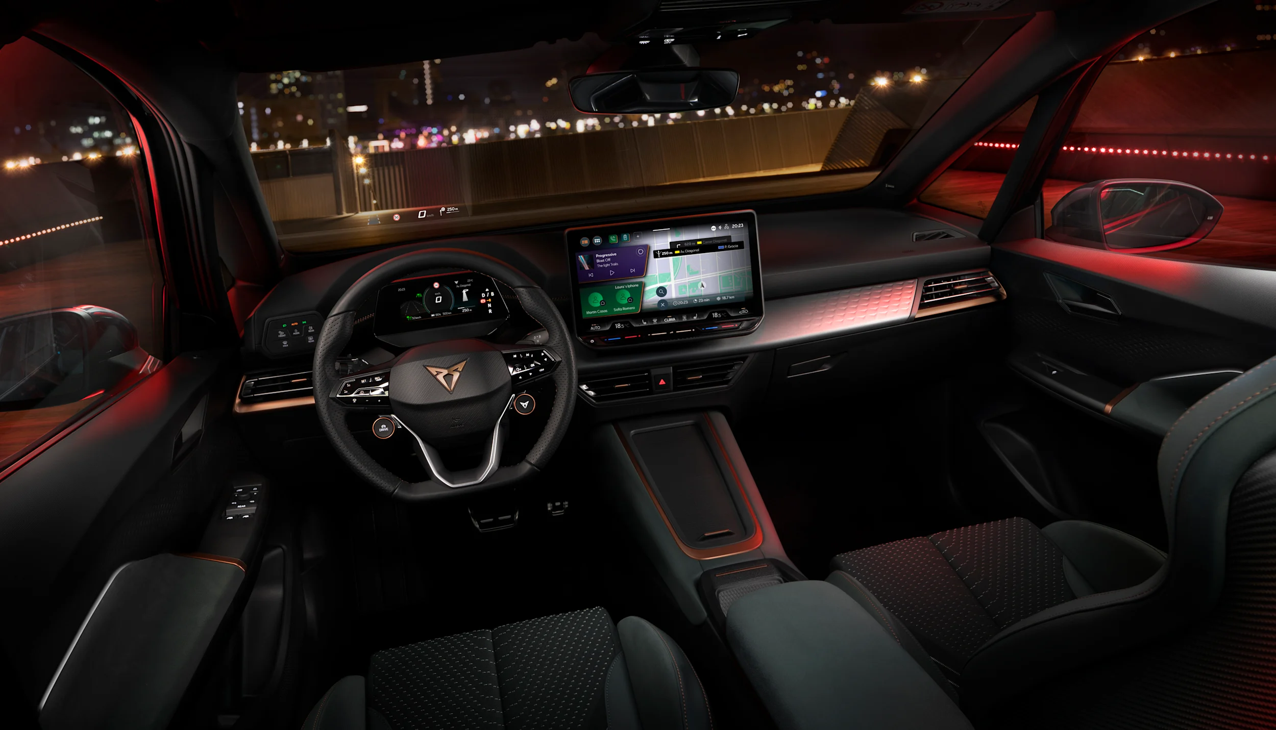 CUPRA Born VZ vie digitalisaatiota eteenpäin. Siinä on uusi ja suurempi 12,9" infotainment-järjestelmä (+0,9" verrattuna nykyiseen CUPRA Borniin), joka yhdistää kosketusnäytön edut uuteen retrovalaistuun kosketuspalkkiin sisäilman ja äänenvoimakkuuden säätämiseksi.