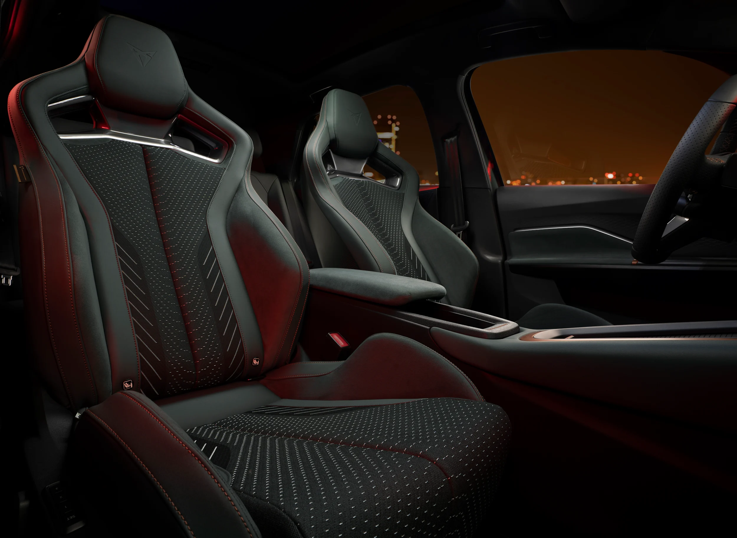 CUPRA Born VZ:n sisusta jatkaa emotionaalista muotoilua. Vakiovarusteiset CUP-kuppi-istuimet ovat eksklusiivinen valinta, joka löytyvät vain tästä CUPRA Bornin versiosta. Samankaltaiset istuimet löytyvät myös CUPRA Formentor VZ5 ja CUPRA Leon VZ CUP -malleista, mutta näissä on matalampi istuinasento, mikä takaa ergonomisemman ja urheilullisemman istuma-asennon. CUPRA Born VZ:n CUP-kuppi-istuimet on valmistettu kierrätetystä SEAQUAL® YARN -tekstiilistä sekä DINAMICAsta, jossa on 73 % kierrätettyä polyesteriä.