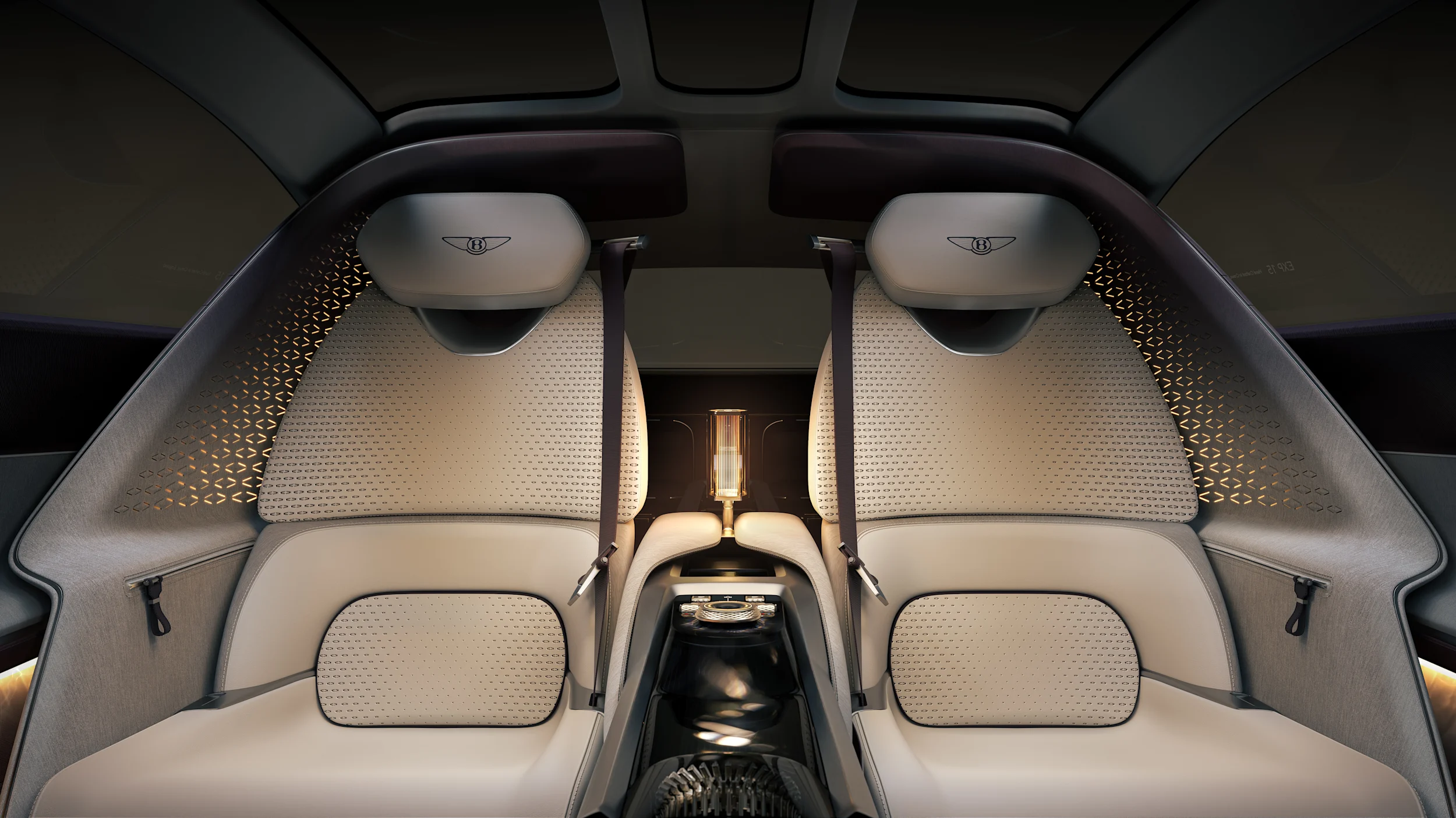 ”Cocooning Haven” on Bentleyn kolmas sisätilasuunnittelun elementti, ja se korostaa asiakkaiden hemmottelun merkitystä. Olipa kyseessä etu- tai takaistuin, ylellinen matkustajan puoleinen istuin on varustettu vasemmalla puolella olevalla kaarevalla suojakuorella, joka nousee selkänojan yli tarjoten yksityisyyttä tarpeen mukaan. Neljäs elementti ”Iconic Details” viittaa Bentleyn sisätiloista tuttuihin elementteihin, kuten “bullseye”-ilmastointisuuttimiin, uritettuihin kytkimiin ja timanttitikattuihin istuimiin.