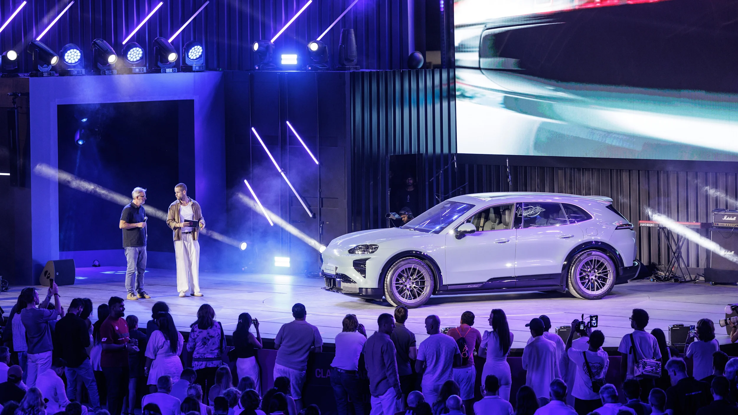 Uudelleen tulkitun klassikon rinnalla Porsche esitteli uuden täyssähköisen Cayennen – ensimmäistä kertaa laajalle yleisölle vain päiviä digitaalisen maailmanensi-illan jälkeen. Teknologisesti edistyksellinen sähköinen SUV-malli, jonka teho yltää jopa 1 156 hevosvoimaan, keräsi runsaasti huomiota. Uusi Porsche Driver Experience -konsepti kaarevine Flow Display -näyttöineen sai yhtä paljon ihailua kuin auton vaikuttavat suoritusarvot ja moderni muotoilu.