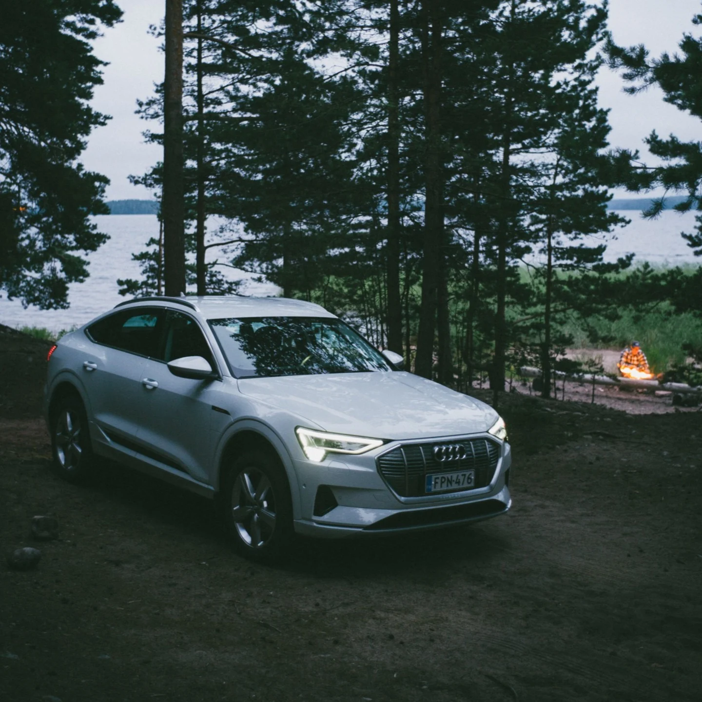 Saimaalla aamu alkaa tuulisena, vaahtopäät nousevat Kattelussaaren edustalla ja aamukahvi lämmittää käsiä jo hieman viileän yön jäljiltä. Teltta kasaan ja kaikki kyytiin, Audi tervehtii meitä lähes 300 kilometrin kantamalla ja ajoaikaa Joensuuhun on vain vajaa kolme tuntia. Audi e-tron Sportback tarjoaa tasaista kyytiä ja kuljettajan avustusjärjestelmät huolehtivat turvallisuudesta maanteillä. Ohjaamo on tilava ja kaikki tarvittava mahtuu helposti takakonttiin. ”Pitkille matkoille on varmasti vaikeaa löytää toimivampaa täyssähköä”, toteaa apukuski säätäessään penkkiään yhä rennompaan asentoon.