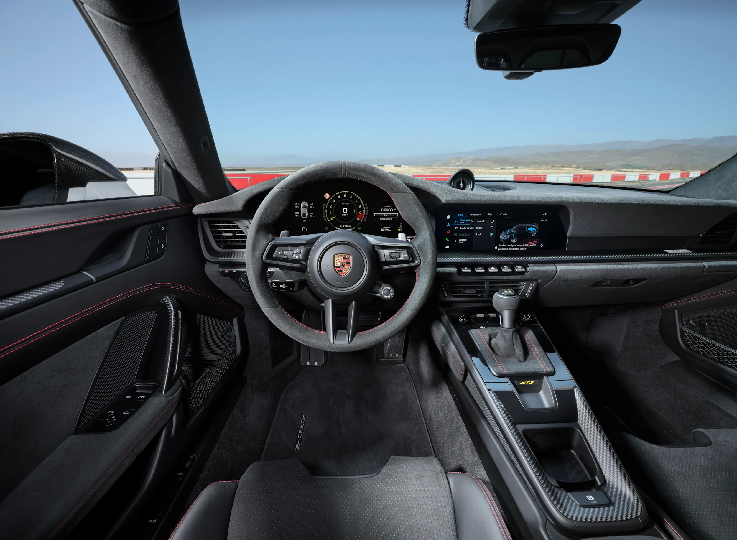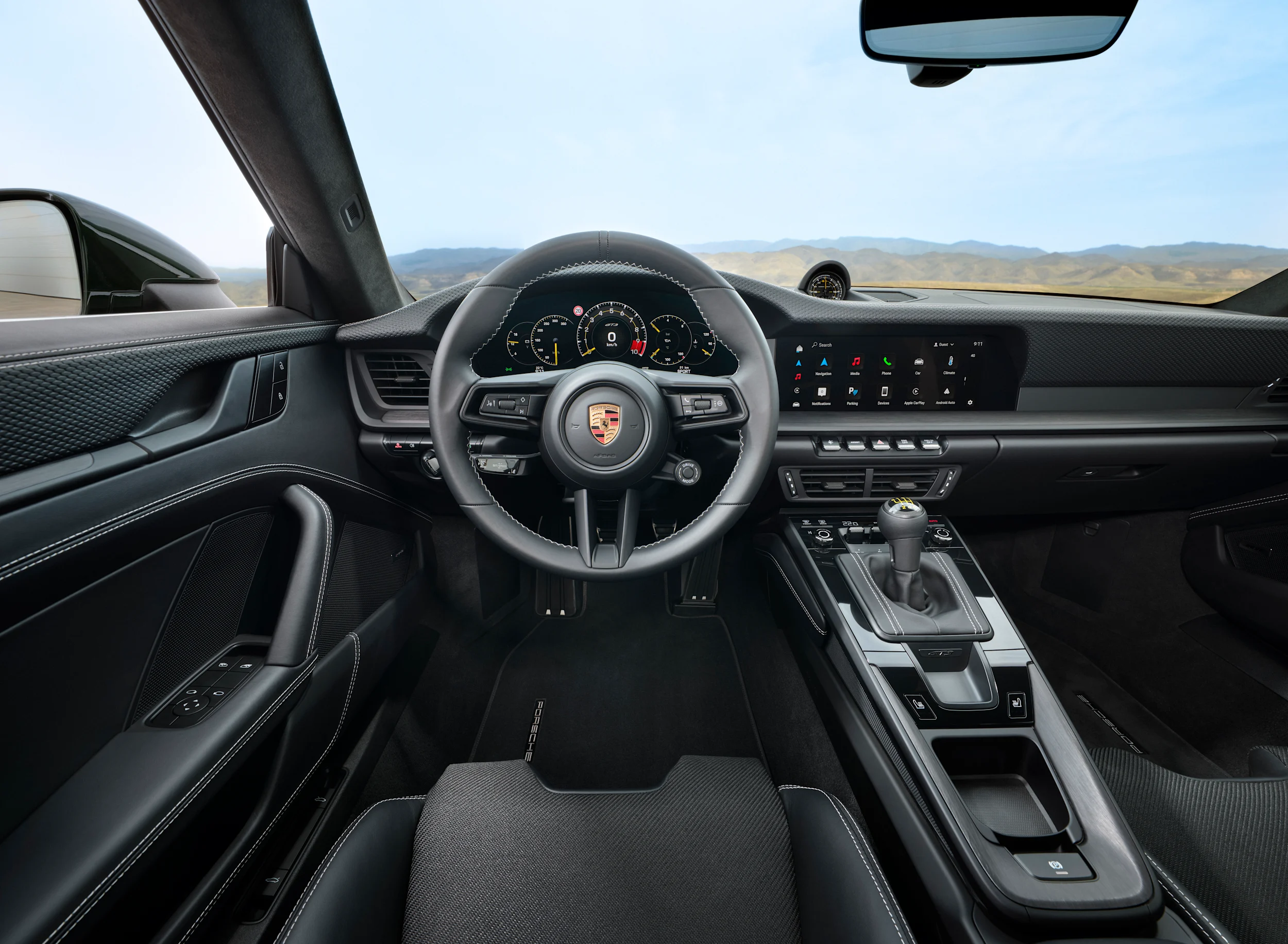 Uuden 911 GT3:n musta kaksipaikkainen vakio-ohjaamo perustuu nykyisten 911-mallien suunnitteluun. Toisin kuin Carrera-malleissa, 911 GT3:a ei kuitenkaan käynnistetä painikkeella, vaan siinä on pyörivä käynnistyskytkin. Lisävarusteena saatava turvakaari osoittaa moottoriurheilun läheisyyden. Keskellä oleva digitaalinen kojetaulu tukee kuljettajaa selkeästi jäsennellyllä näyttö- ja ohjauskonseptilla. Kontrastisen värimaailman ansiosta kierroslukulaskuri ja sekuntikello voidaan lukea salaman nopeasti. "Track Screen" -näyttötila pienentää vasemman puolen kierroslukumittarin ja oikealla puolella olevat digitaaliset näytöt ilmoittavat tärkeimmät tiedot renkaista, öljystä, vedestä ja polttoaineesta sekä ilmoittaa kuljettajalle optimaalisen vaihtoajan vaihtomerkin avulla. Haluttaessa kierroslukumittarin näyttöä voidaan kääntää niin, että 9000 rpm:n katkaisunopeus on kello 12-merkinnässä.