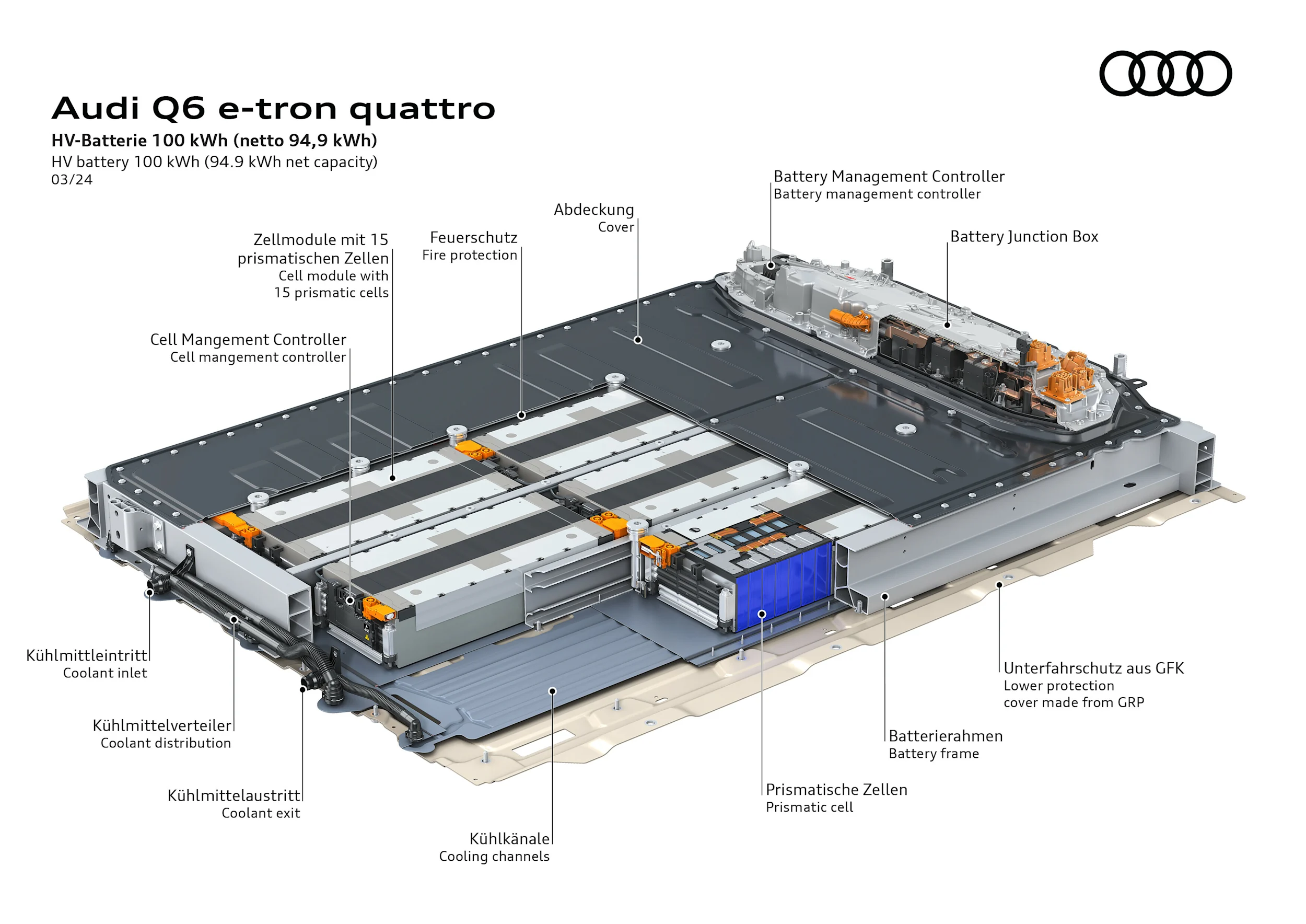 Taloudelliset, kompaktit ja erittäin tehokkaat sähkömoottorit sekä äskettäin kehitetty litiumioniakku, joka koostuu kahdestatoista moduulista ja 180 prismakennosta, joiden kokonaisbruttokapasiteetti on 100 kWh (94,9 netto), takaavat jopa 625 km:n toimintamatkan*. Uusi Audi Q6 e-tron varmistaa urheilullisen suorituskyvyn 285 kW:n järjestelmätehollaan ja SQ6 e-tron, jonka järjestelmäteho on jopa 380 kW (Boost-toiminnolla) ja asettaa standardit suorituskyvyn, toimintamatkan, latauksen, ajodynamiikan ja suunnittelun suhteen. Suomessa myynnin alkaessa saatavilla on kaksi nelivetoista quattro-malliversiota, joita seuraa myöhemmin energiatehokkaat takavetoiset mallit. Audi Q6 e-tron quattro kiihtyy 0-100 km/h 5,9 sekunnissa. SQ6 e-tron quattrolla sama kestää vain 4,3 sekuntia. Autojen huippunopeudet ovat 210 ja 230 km/h.