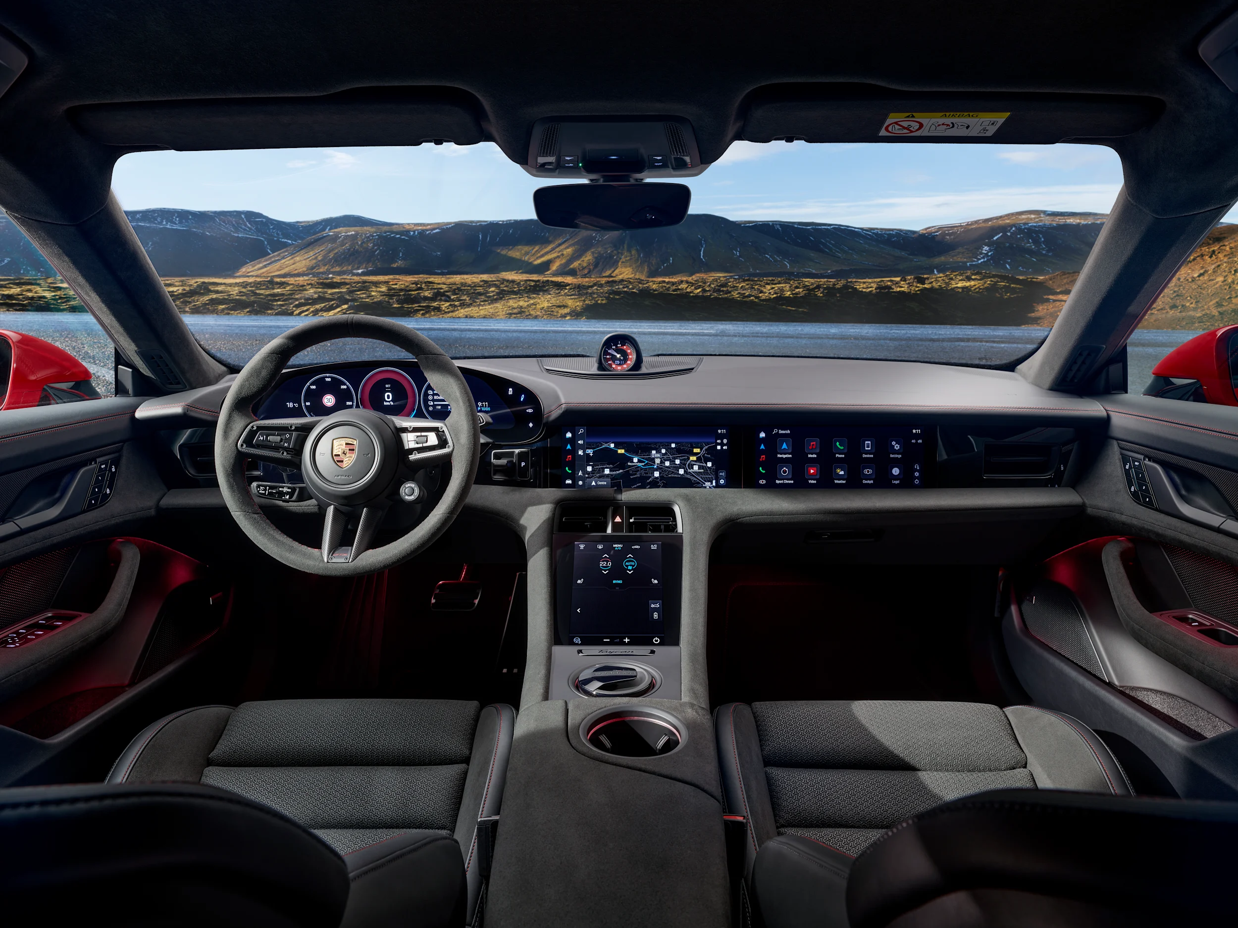 Monet sisätilojen materiaalit on otettu Taycan Turbo GT -malleista. Esimerkiksi Taycan GTS -malleissa on vakiona laajennetut urheilulliset Race-Tex-yksityiskohdat ja sileät mustat nahkaelementit. Mukana ovat myös Adaptive Sports Seats Plus -istuimet (sähköinen 18-suuntainen säätö), lämmitettävä GT-Sports-monitoimiohjauspyörä sekä Sport Chrono -paketti, joka sisältää push-to-pass -toiminnon ja ratatilan. Taycan Turbo GT -malleista tuttu GT-Sports-monitoimiohjauspyörä on saatavana Race-Tex-mustana pyynnöstä. Se sisältää kaksi tilakytkintä ja valitsimet push-to-pass-toiminnolle ja energian talteenottoa varten. Carmine Redin lisäksi valinnainen GTS-sisustuspaketti on nyt saatavilla myös Slate Grey Neo -värisenä. Taycan GTS -logo on esillä mittaristossa, tehomittarissa ja käynnistysgrafiikassa. BOSE® Surround Sound System on vakiovaruste.