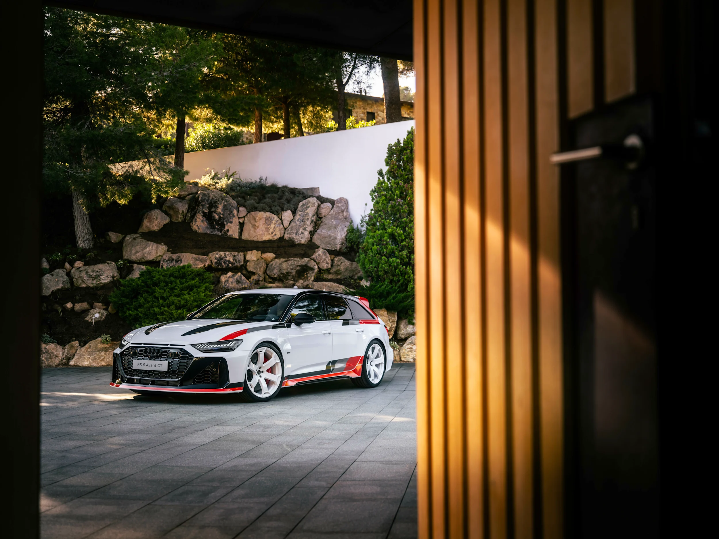 Sivuprofiilin määrittelevät sivuhelmoissa olevat lisäosat, kiiltävästä hiilikuidusta valmistetut ulkopeilien kotelot ja 22 tuuman 6-puolaiset vanteet, jotka on valmistettu yksinomaan RS 6 Avant GT:lle. Takana erikoisversio tekee vaikutuksen mustalla "RS 6 GT" -logolla, erityisesti muotoiluun soveltuvalla takaluukulla, jossa on visuaalisesti madallettu lastausreuna, käytännöllisellä diffuusorilla, jossa on pystysuoraan keskitetty heijastin, joka saa auton näyttämään entistä leveämmältä, ja erottuva moottoriurheilusta inspiraation saanut tuplasiipi. Jälkimmäinen otettiin lähes 1:1 harjoittelijoiden rakentamasta konseptiautosta. Ensimmäistä kertaa RS 6 Avantin historiassa kattokaiteet on poistettu vielä tasaisemman ja urheilullisemman siluetin aikaansaamiseksi.