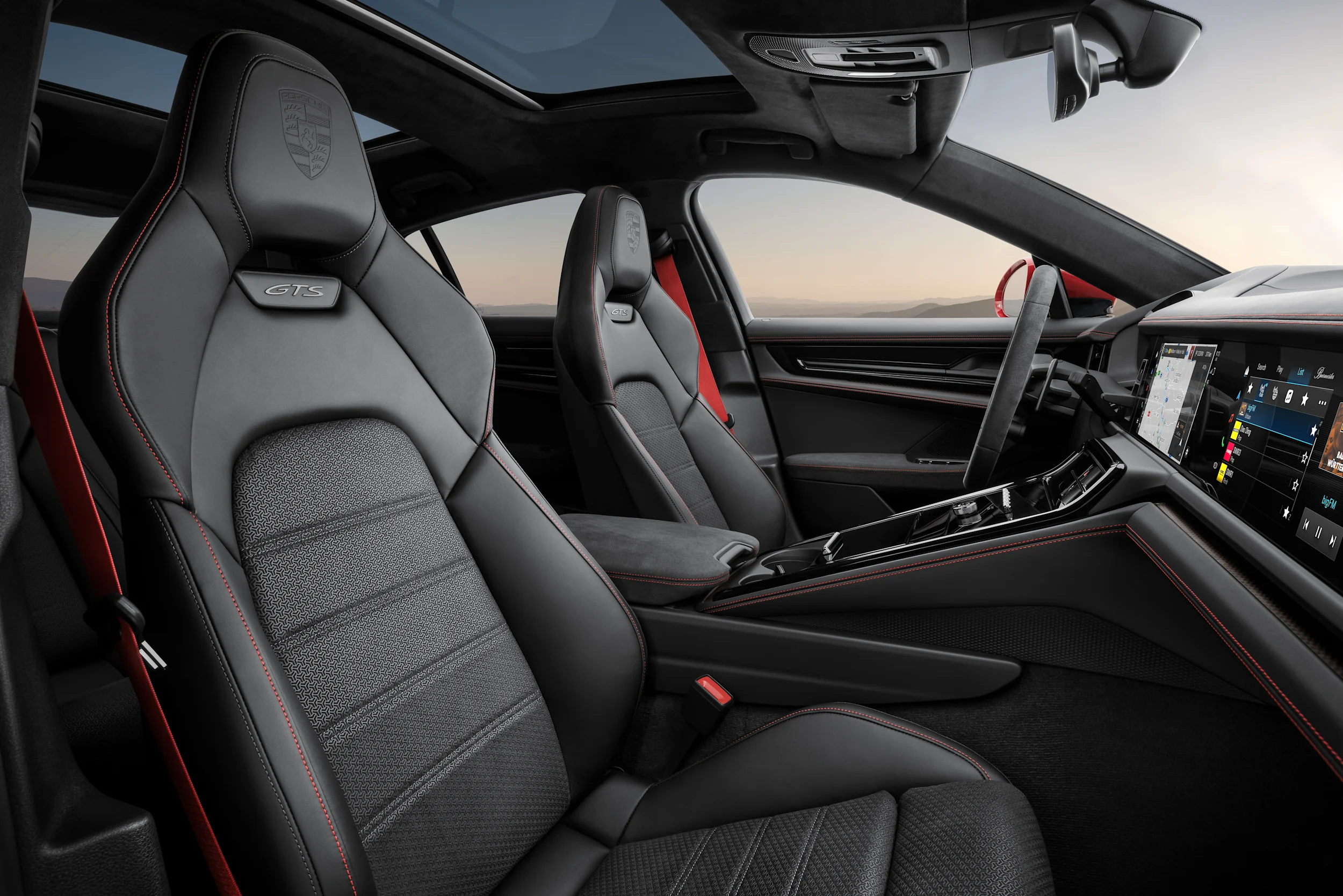 Sisustuksessa Porsche on käyttänyt ylenpalttisesti mokkanahkaa muistuttavaa Race-Texiä. Se peittää kattoverhoilun, käsinojat ja ovipaneelit sekä mukautuvien, 18- suuntaisten sähkösäätöisten adaptiivisten Sport-istuimien keskiosat. Porsche tarjoaa myös kaksi GTS-kohtaista sisustuspakettia Carmine Red tai Slate Grey Neo. Myös koristetikkaukset ja turvavyöt tulevat valitun paketin värisenä. Saatavana on myös Carbon Matt -sisustuspaketti. Panamera GTS:n vakiovarusteisiin kuuluvat myös Bose®-kaiutinjärjestelmä ja Sport Chrono -paketti sekuntikellolla ja push-to-pass -toiminnolla.