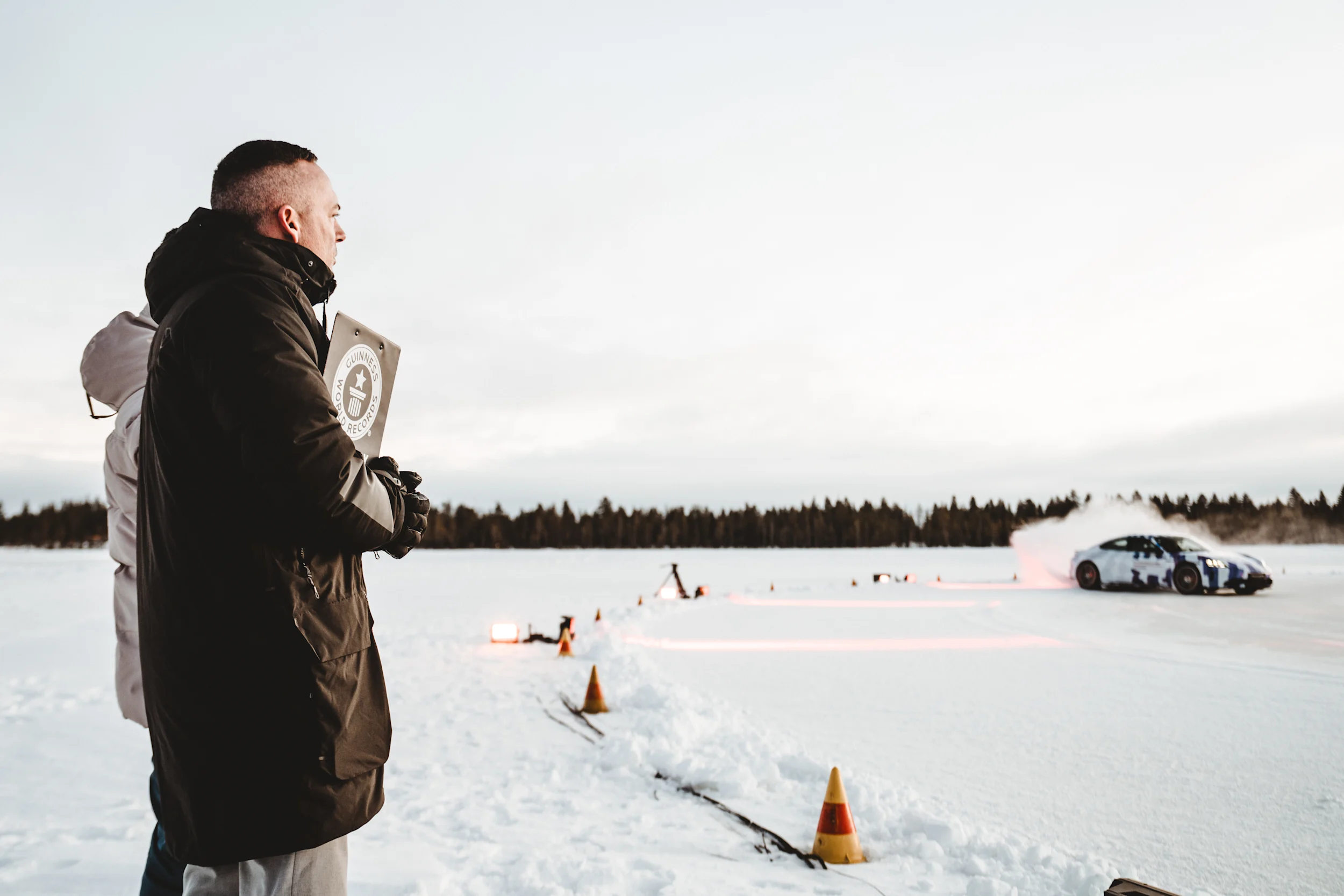 Carl Saville oli läsnä Guinness World Recordsin virallisena tuomarina. Heti ennätysajon jälkeen hän ojensi ennätystodistuksen kuljettaja Jens Richterille ja Porsche Arctic Centerin toimitusjohtajalle ja Porsche AG:n Porsche Experience ja New Platforms -johtajalle Christian Lehwaldille. "Kokemuksellinen markkinointilähestymistapamme sisältää aina epätavallisten asioiden kokeilemisen. Porsche Arctic Center tarjoaa poikkeuksellisen hyvät olosuhteet driftingiin jäällä. Uusi Taycan GTS on puolestaan yksi markkinoiden tehokkaimmista sähköautoista. Joten olimme melko varmoja, että voisimme rikkoa maailmanennätyksen tällä yhdistelmällä ja hyväksyimme haasteen", sanoo Christian Lehwald.