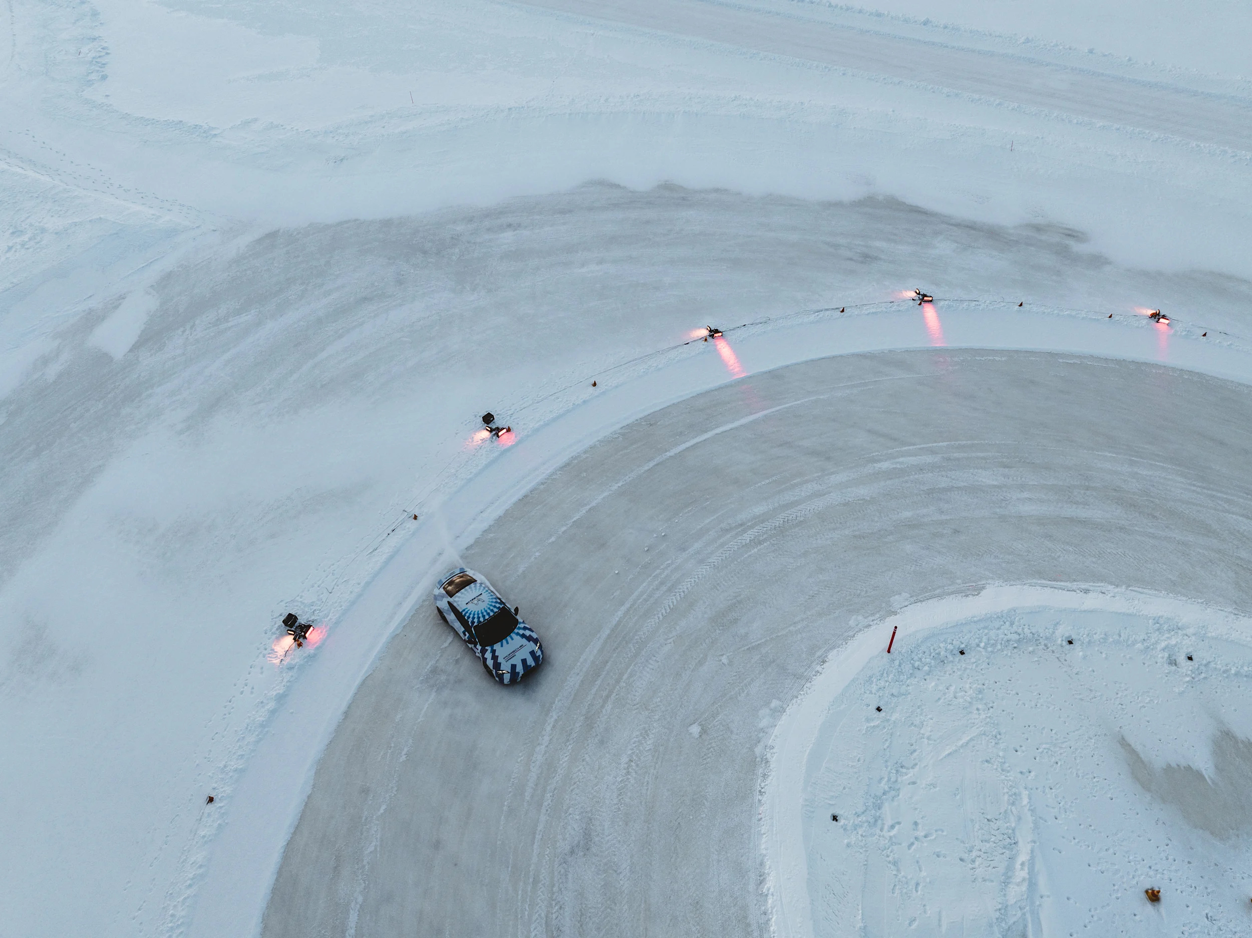 Ajo tapahtui Porsche Arctic Centerin jääradalla Levillä, Suomessa, noin 150 kilometriä napapiiristä pohjoiseen Guinness World Recordsin virallisen tuomarin valvonnassa. Ennätysyritystä varten Porsche Experience -tiimi oli luonut drifting-radan, jonka halkaisija oli 59 metriä. Kaupallisesti saatavilla olevat Michelin-renkaat, joissa oli yhden millimetrin nastat, asennettiin molemmille Taycan GTS:n akseleille onnistuneen ennätysyrityksen ajaksi.