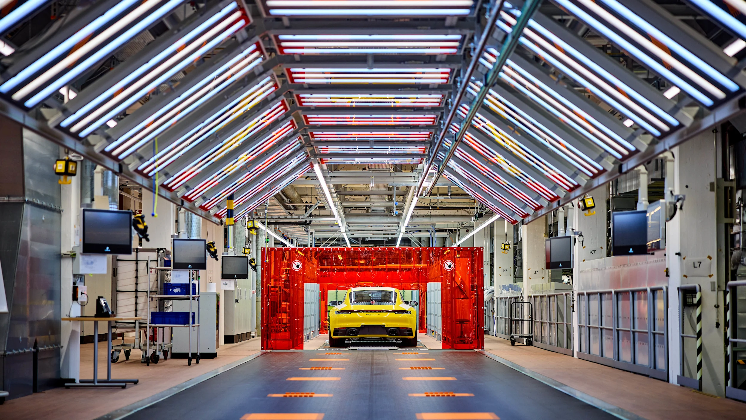 Integroidakseen uusia tuotantovaiheita Porsche on laajentanut kaksiovisten urheiluautojensa tuotantolinja-aluetta päätehtaalla. Tämä toteutettiin jo Porsche Taycanin tuotannossa, ja nyt siihen käytetään myös automaattiohjattuja autolinjastoja (AGV). Uusimman sukupolven AGV-autot korvaavat klassisen kokoonpanolinjan "Flexilinellä" ja mahdollistavat siten entistä vaihtelevamman tuotantoprosessin – tämä on erityisen edullista, kun otetaan huomioon polttomoottorilla ja sähkövoimalinjalla varustettujen autojen tuleva sekatuotanto yhdellä tuotantolinjalla.