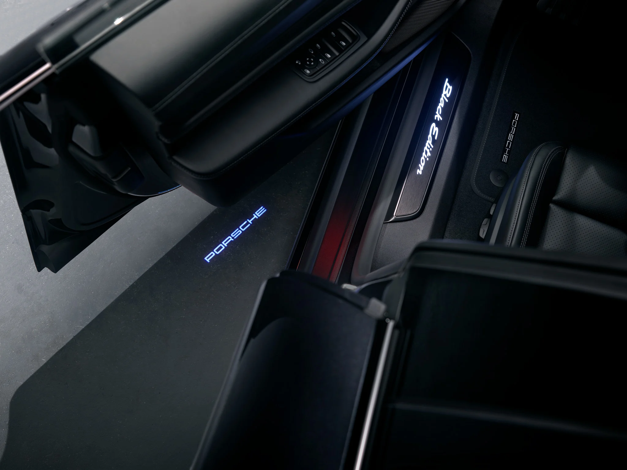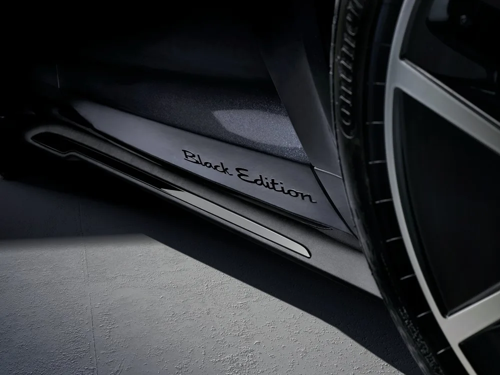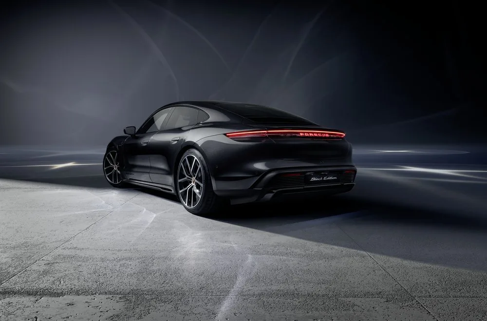 Mustat yksityiskohdat korostavat Black Edition -mallien urheilullista ja eleganttia ilmettä niin ulko- kuin sisäpuolellakin. Taycanissa Sport Design -paketti, sivuikkunoiden listat ja takana oleva mallimerkintä on viimeistelty kiiltävän mustaksi. Kiiltävän mustat peilikotelot yhdistettynä muihin ulkoväreihin ovat saatavilla yksinoikeudella Black Edition -malleihin. Takavalonauha, jossa on valaistu musta Porsche-logo, kuuluu vakiovarustukseen. Sisätiloissa musta sisustuspaketti, säilytyspaketti ja mustaksi harjatut valaistut alumiiniset kynnyslistat sisältyvät myös mukaan.