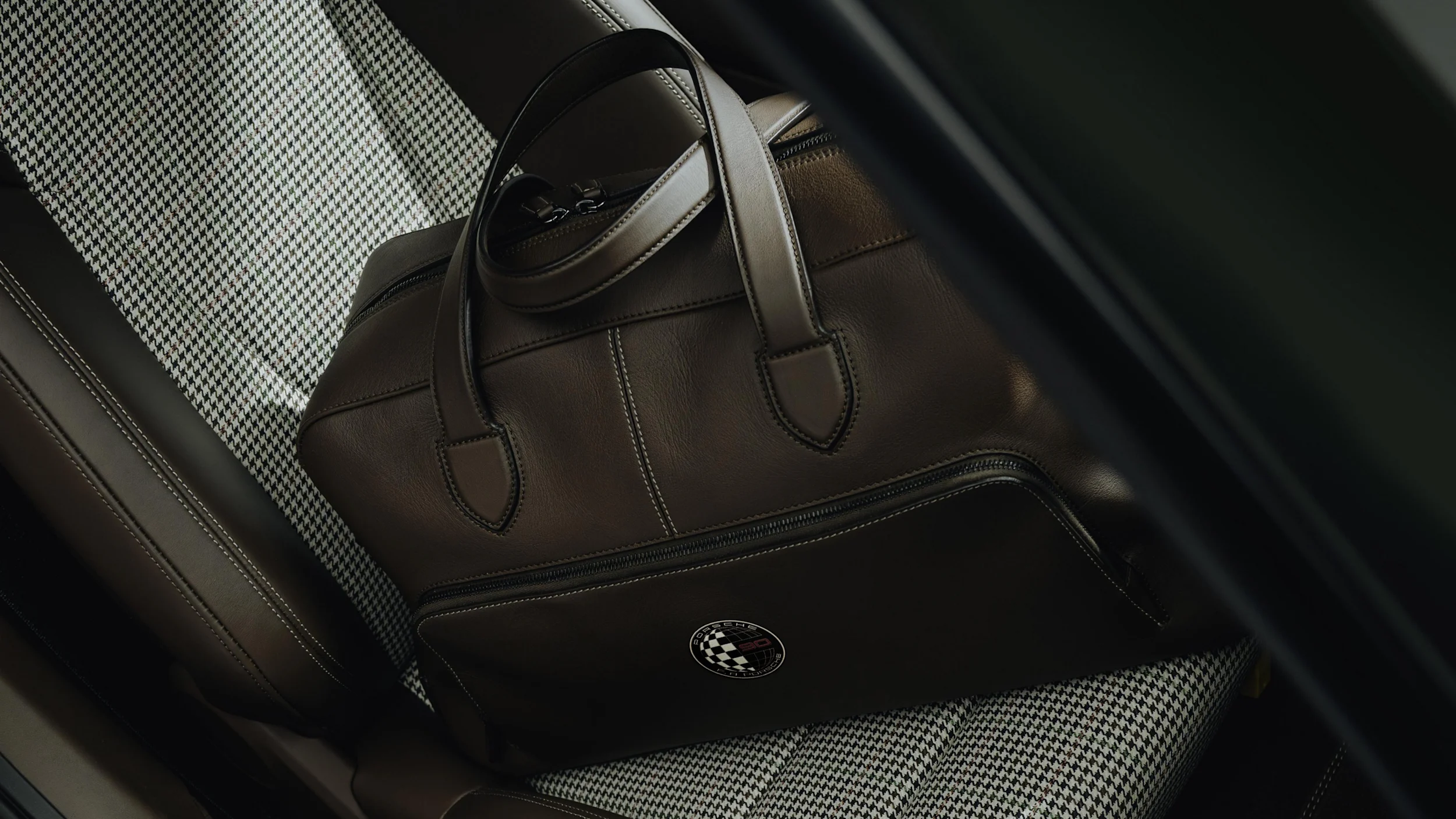 Porsche Design Chronograph 1 – 911 GT3 90 F. A. Porschen lisäksi pakettiin kuuluu erityinen matkalaukku. Materiaaleiltaan ja väriltään tämä tilava viikonloppulaukku jatkaa keräilymallin sisätilakonseptia. Laukku on valmistettu samasta Truffle Brown -nahasta kuin auton sisätilat ja siinä on Chalk Beige -koristeompeleet. Viikonloppulaukun etutaskun vuori on valmistettu F. A. Grid-Weave -kankaasta, jota käytetään istuimien keskiosissa, kun taas päälokero on vuorattu korkealaatuisella mikrokuidulla. Laukun ulkotaskuun on kirjailtu juhlamerkin logo, joka vastaa tavaratilan kannen ritilässä olevaa merkkiä.