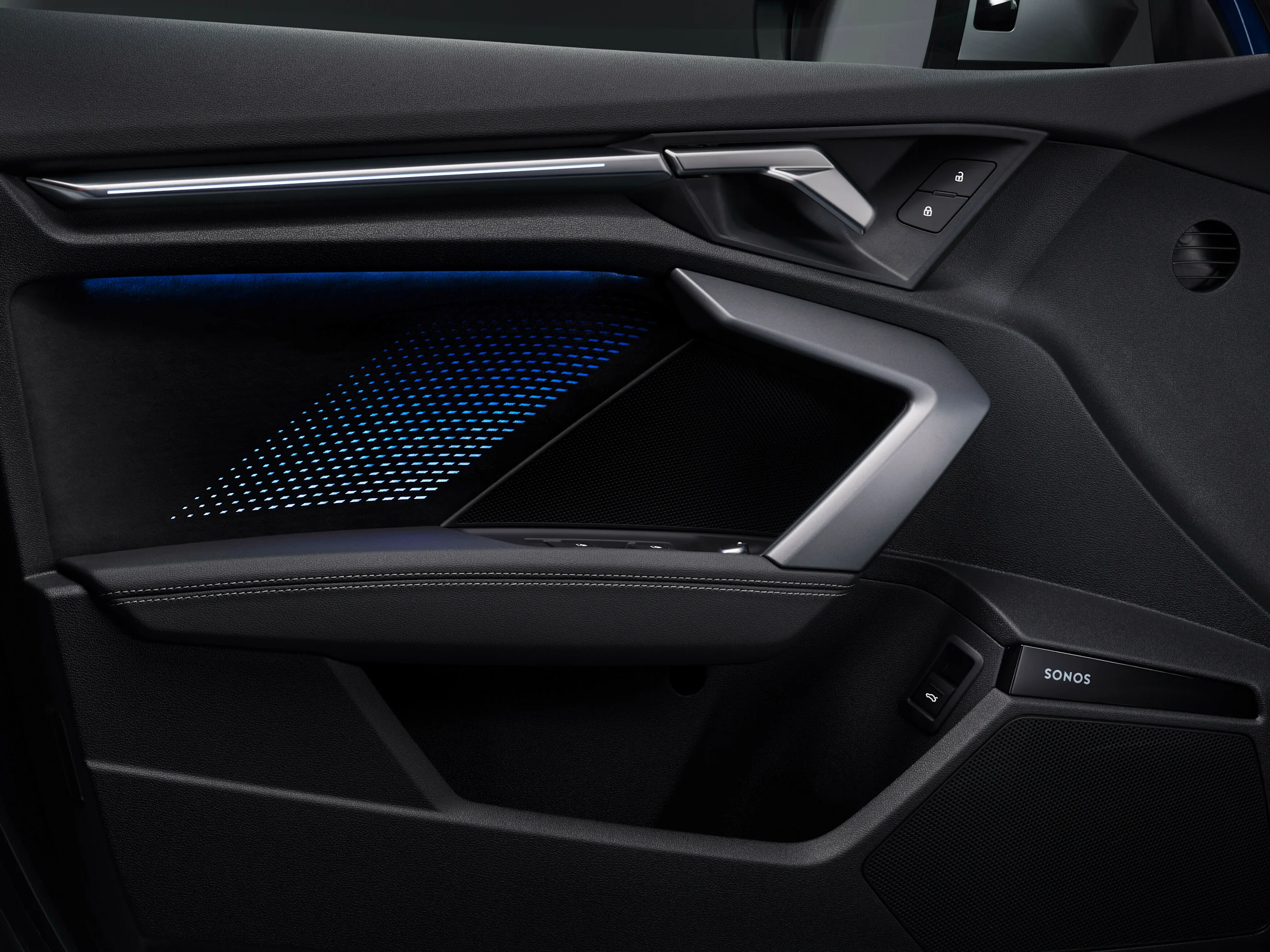Audi S3:n vakiovarusteinen LED-sisävalopaketti Plus sisältää aiempaa enemmän elegantteja tunnelmavalaistuselementtejä. Yksi uusi valodesign-elementti on etuovien valaistus, joka sisältää 300 erillistä valontuloa, joka luo upean tunnelman sisätiloihin (lisävaruste).
