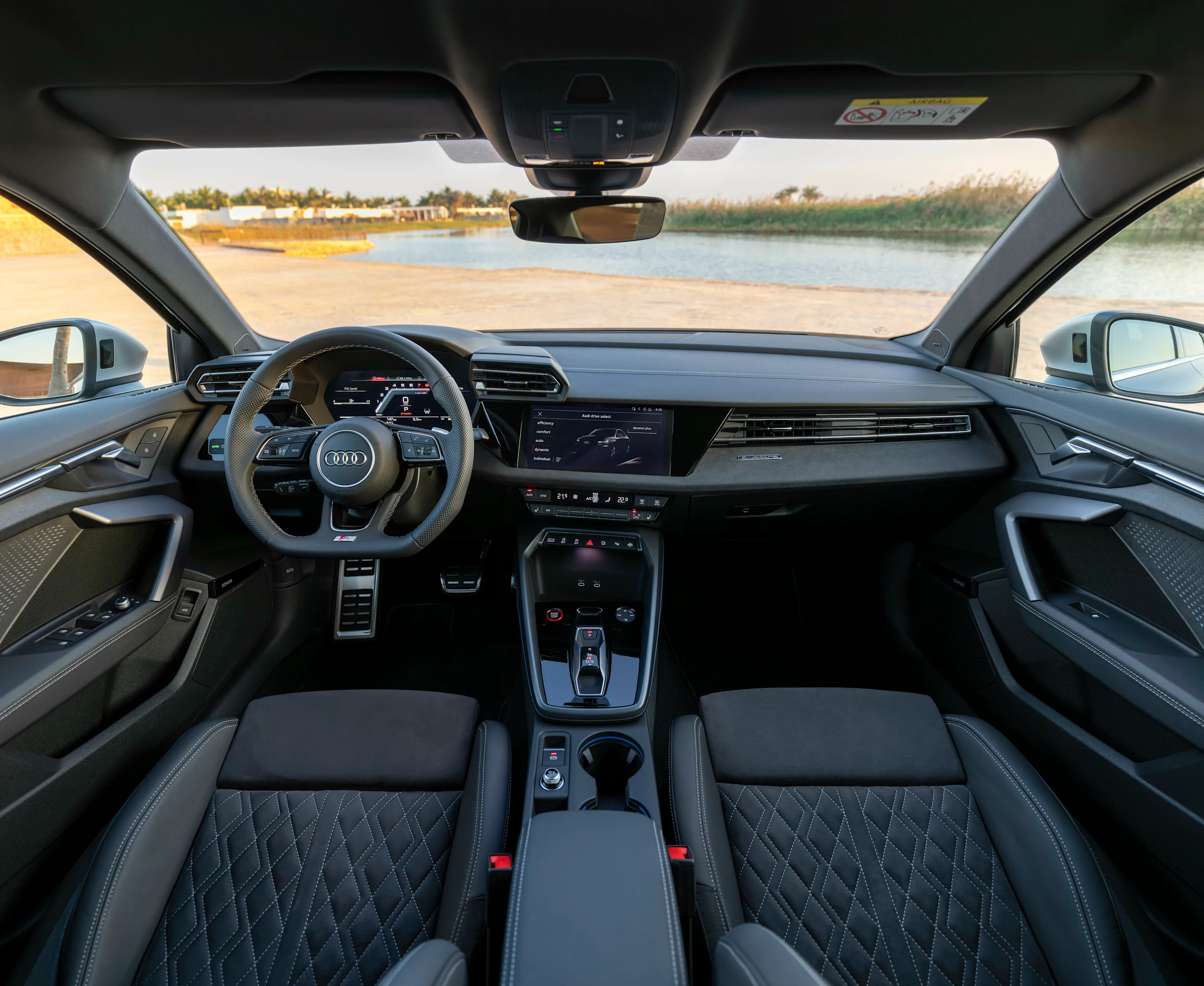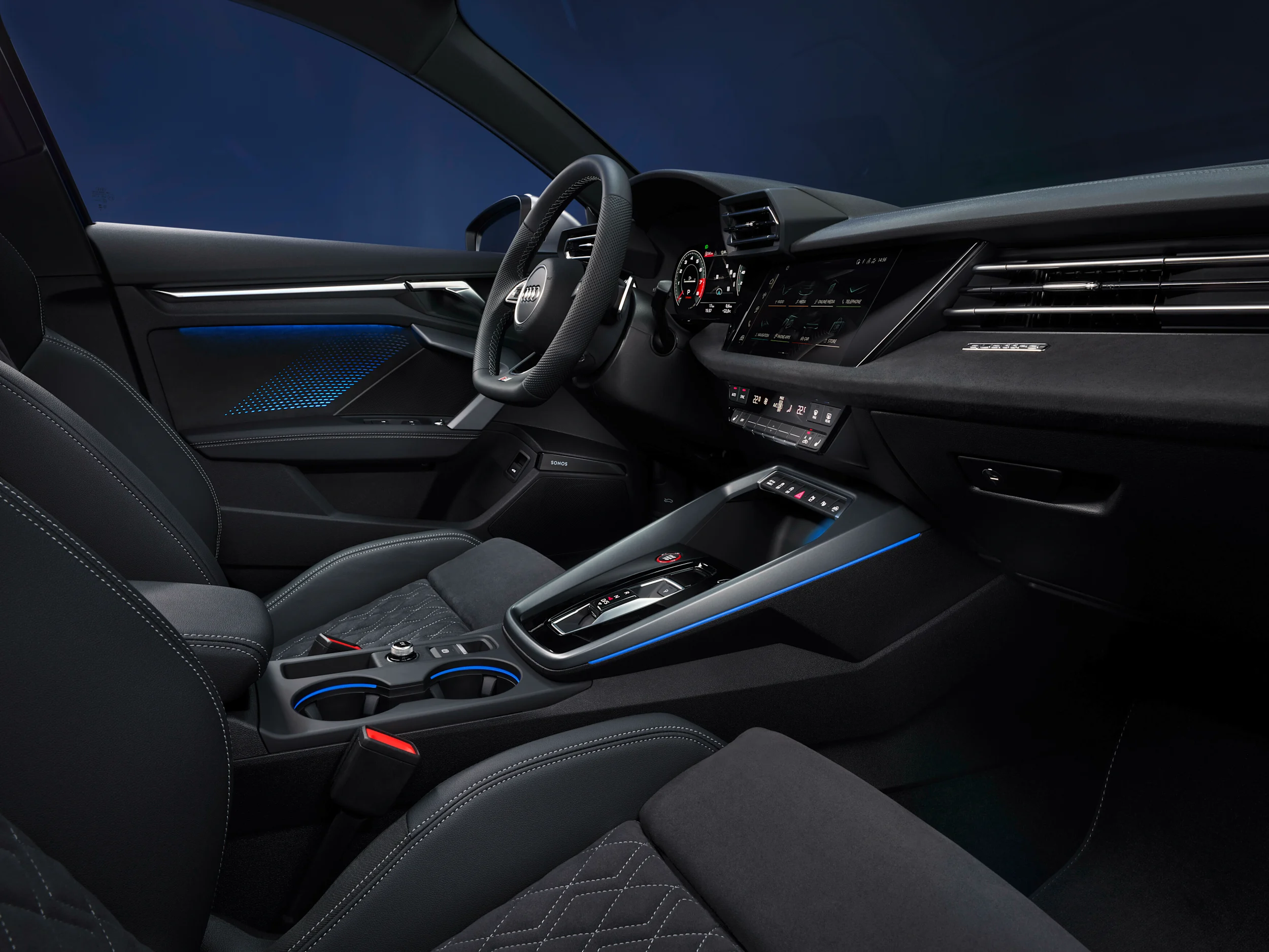 Audi S3-mallien sisustuksessa on käytetty tummia värejä sekä hopeisia aksentteja. Musta kattoverhoilu, ruostumattomasta teräksestä valmistetut polkimet, alumiiniset kynnyslistat valaistulla S-logolla korostavat auton urheilullista luonnetta. Keinonahkaiset käsinojat ja 3-alueinen mukavuusilmastointi ovat vakiona. Urheilullinen ohjauspyörä tasaisella alaosalla sisältää uudet kromipinnoitetut vaihteenvalitsimet. Urheiluistuimet integroiduilla pääntuilla tarjoaa hyvän sivutuen. Uudet somistelistat, kuten Dinamica®-mikrokuitu ja tekninen kangas ovat myös saatavilla tuttujen alumiinisien kuin hiilikuidun lisäksi.