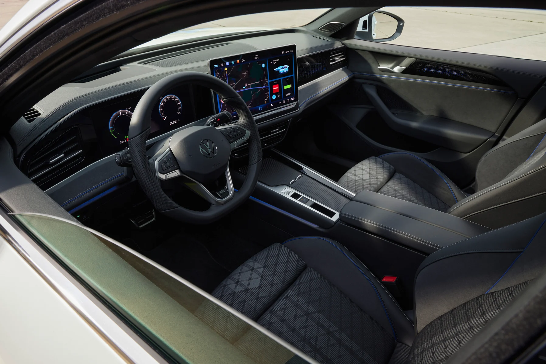 Uuden sukupolven sisustus: Volkswagen on suunnitellut korkealaatuisen sisustuksen kokonaan uudelleen. Selkeästi jäsenneltyä näyttökokemusta luonnehtii 12,9 tuuman vakionäyttö, joka on saatavana lisävarusteena myös 15 tuumaisena. Teknisenä perustana toimii uusimman sukupolven modulaarinen infotainment-järjestelmä (MIB4). Uusi Passat jakaa valikkorakenteen ja graafisen muotoilun täyssähköisten ID.-mallien kanssa. Passat asettaa lisäksi uusia standardeja mukavuuden suhteen. Tämä pätee erityisesti lisävarusteena saatavilla olevan uuden mukautuvan alustanhallintajärjestelmän (DCC Pro) tapauksessa. Volkswagenissa käytetään ensimmäistä kertaa kaksiventtiilisiä iskunvaimentimia, mikä mahdollistaa epätavallisen suuren jakauman dynamiikan ja mukavuuden välillä. Erinomaista pitkien matkojen ajomukavuutta lisäävät vakiovarusteiset ergoActive-istuimet, joissa on uusi pneumaattinen painepistehierontatoiminto.
