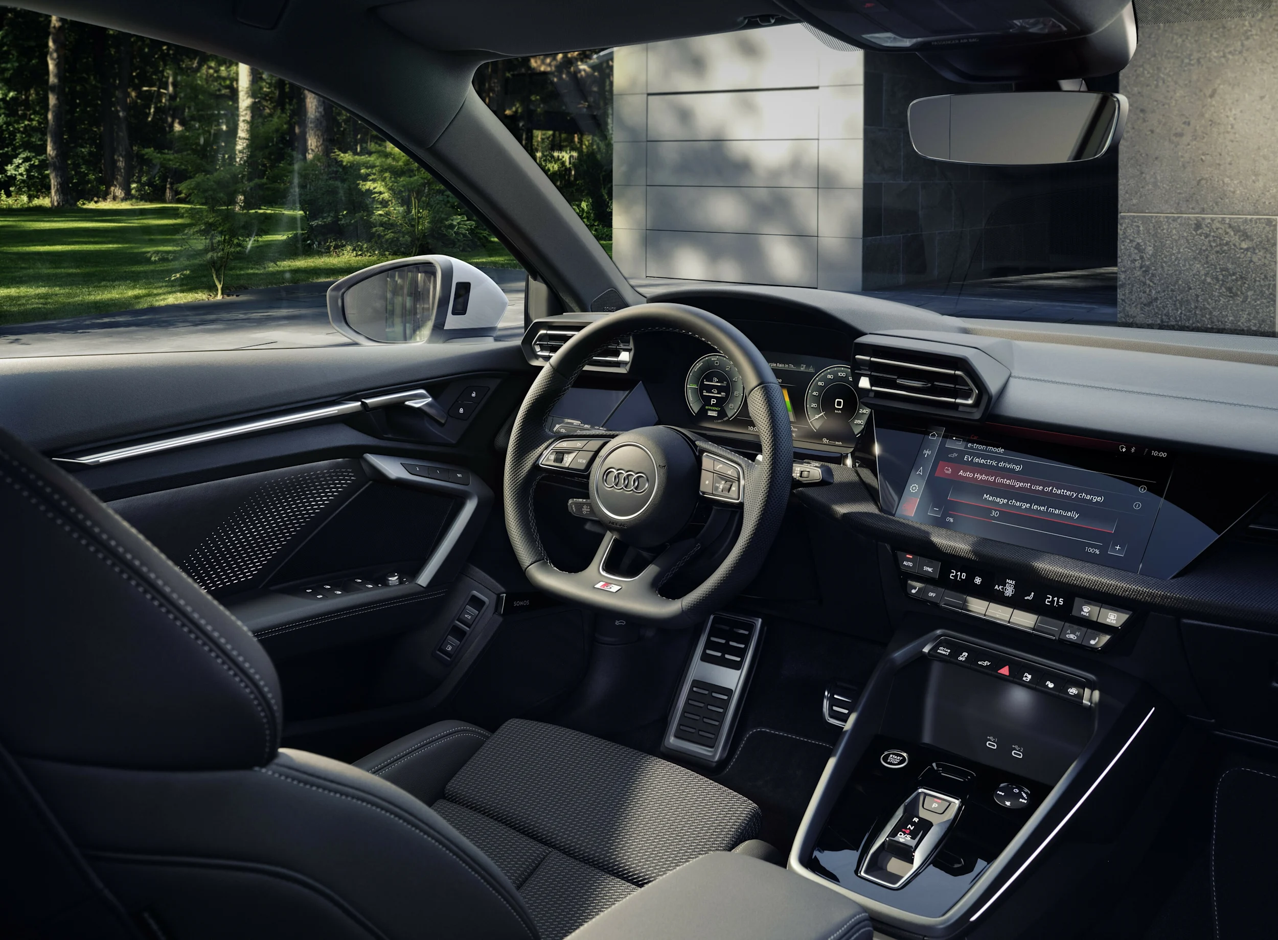 Ladattavan hybridin moottorin- ja voimalinjanohjaus on suunniteltu optimaalista taloudellisuutta varten. Kuljettaja voi priorisoida sähkömoottorilla ajamista valitsemalla EV-ajotilan ohjauspaneelista tai MMI-näytön kautta, jolloin autolla voi ajaa kuin sähköautolla. Ensisijainen ajotila, “Auto Hybrid”, hyödyntää älykkäästi polttomoottorin ja sähkömoottorin käyttöä. Tämä tila käyttää sähköistä ajoa alhaisilla nopeuksilla, TFSI-moottoria korkeammilla nopeuksilla ja käyttää usein molempia yhdessä.