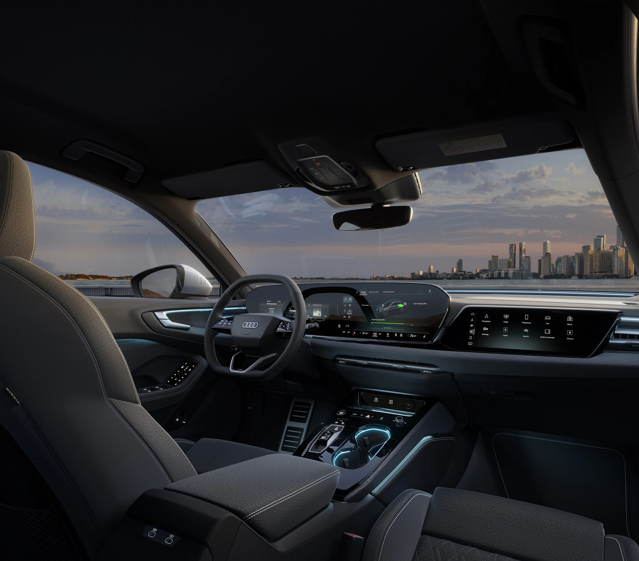 Vakiovarusteluun kuuluva ilmastointijärjestelmä toimii paitsi EV- ja hybriditilassa myös sähköisesti ennen liikkeellelähtöä. Ilmastointi varmistaa mukavan sisälämpötilan jo ennen autoon astumista. Se voidaan ohjelmoida suoraan autosta tai myAudi-sovelluksen kautta. Mukavuusseisontailmastointi auttaa aktivoimaan lisää ominaisuuksia (lisävarusteita), kuten istuinlämmitys, istuimen tuuletus, ohjauspyörän lämmitys ja tuulilasin lämmitys. Auton avaaminen kaukosäätimen avaimella voi käynnistää "nopea ilmastointi" -toiminnon. Tämä tarkoittaa, että sisätilat voidaan nopeasti jäähdyttää ilman sovellusta. Vakiovarusteluun kuuluva 3-alueinen automaatti-ilmastointi säätelee automaattisesti ilman lämpötilaa, määrää ja kohdistusta erikseen kuljettajalle, etumatkustajalle ja takaistuimille. Mukavuusilmastointi voidaan asettaa tai aktivoida MMI:ssä tai kätevästi myAudi-sovelluksen kautta.