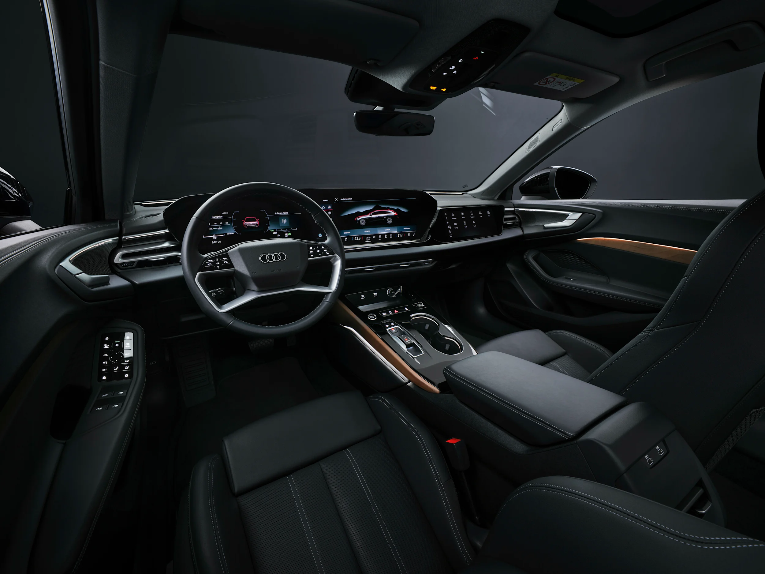 Audi A5 -perheen uusi toimintakonsepti lisää vuorovaikutusta auton kanssa E³ elektronisen arkkitehtuurin ansiosta. Uusi Audi A5 integroituu saumattomasti matkustajien digitaaliseen ekosysteemiin ja tarjoaa personoitavan liitettävyyskokemuksen. Ohuessa Audi MMI -panoraamanäytössä on kaareva muotoilu ja se käyttää OLED-tekniikkaa. Se koostuu Audi 11,9 tuuman Audi virtual cockpit -mittaristosta, ja 14,5 tuuman MMI-kosketusnäytöstä. Audi täydentää etumatkustajien digitaalista näyttämöä lisävarusteena saatavalla 10,9 tuuman etumatkustajan MMI-näytöllä, joka on integroitu täydellisesti kojelautaan. Uudessa A5:ssa on lisävarusteena saatavilla konfiguroitava head-up-tuulilasinäyttö, jota on kehitetty edeltäjäänsä verrattuna. Kuljettajilla on nyt ensimmäistä kertaa mahdollisuus ohjata auton ja infotainment-järjestelmän toimintoja head-up-tuulilasinäytön kautta.