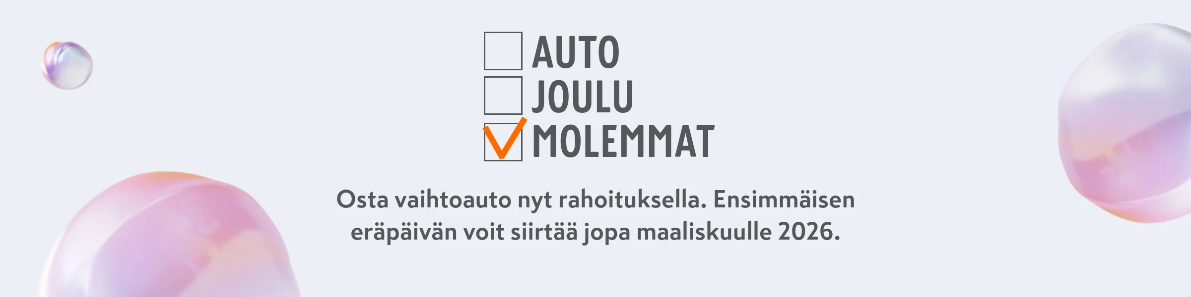Vaihtoautorahoituksiin on nyt mahdollisuus siirtää ensimmäisen kuukausimaksun eräpäivää 1–3 kuukautta eteenpäin valintasi mukaan. Kysy lisää myyjältä.