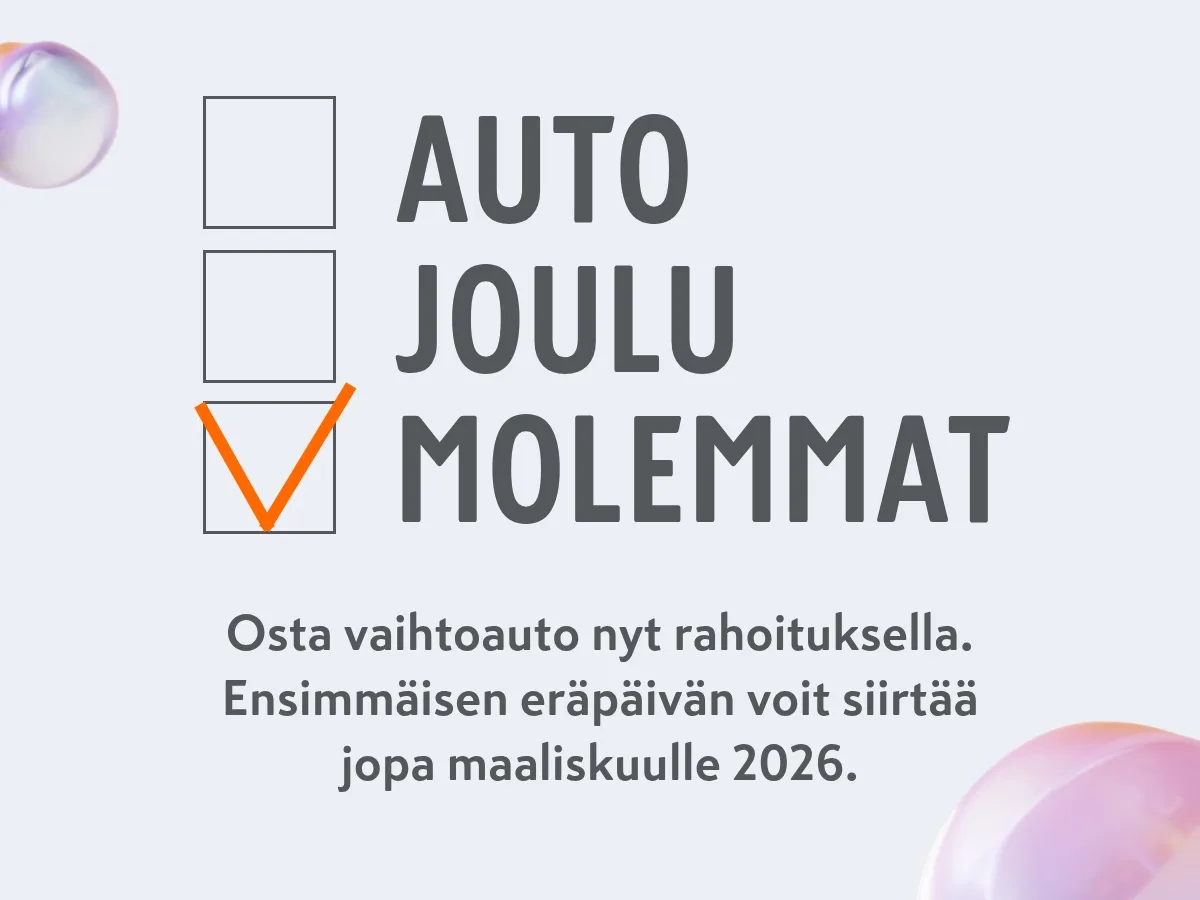 Vaihtoautorahoituksiin on nyt mahdollisuus siirtää ensimmäisen kuukausimaksun eräpäivää 1-3 kuukautta eteenpäin valintasi mukaan. Ensimmäisen erän yhteydessä asiakas maksaa aiempien kuukausien korot sekä normaalin lyhennyserän. Kampanja on voimassa uusiin vaihtoautojen rahoitussopimuksiin 21.12.2025 asti.