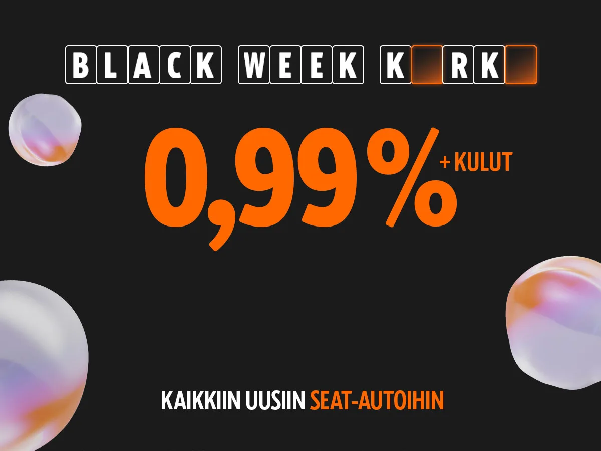 Kaikki uudet SEATit nyt korolla 0,99 % + kulut! Lisäksi valikoiduista SEAT-vaihtoautoista kertyy Plussa-piste jokaisesta eurosta. Black Weekin SEAT-tarjouksista löydät runsaasti vaihtoehtoja sekä räätälöityihin tehdastilauksiin että nopeasti toimitettaviin malleihin. Tutustu SEAT-mallistoon ja nappaa itsellesi sopiva Black Week -etu vielä kun ehdit!